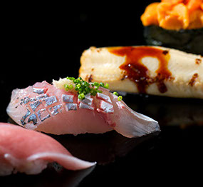 厳選した海の幸、信州の滋味あふれる山の幸を使い、鯛将が手間をかけて仕上げます。趣向を凝らした味わい深い逸品を一つひとつご賞味頂ける鮨会席は特にお薦めです。そして、食と共に愉しめるのが「あじ」こだわりのお酒。地酒、焼酎に限らず、シャンパーニュ