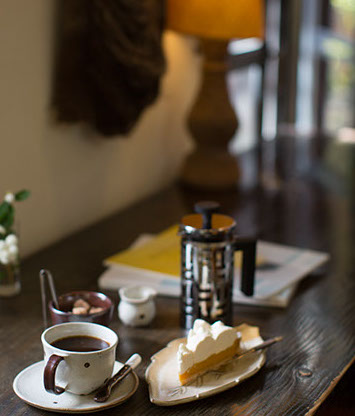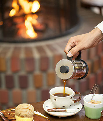 別荘の一角に佇む軽井沢本店は、24年の歴史を刻み続けた丸山珈琲発祥の地。軽井沢の自然に囲まれ、ペンションを改装した店内では、まるで知人の家を訪ねたようなリラックス感を漂わせます。冷え込む日には暖炉が赤々と燃え、コーヒーを飲みながら、